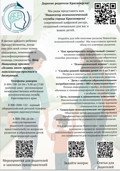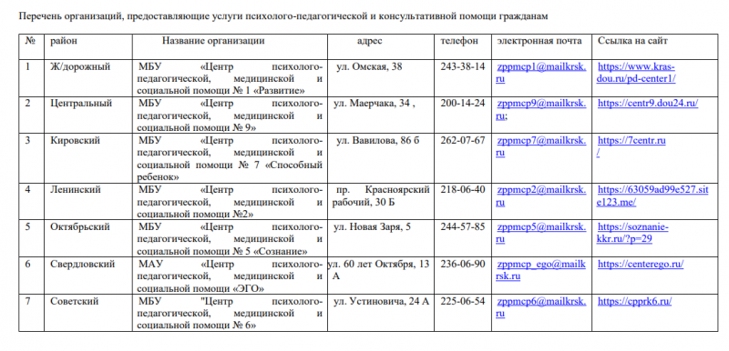 8-800-700-24-04 - региональная межведомственная мобильная психологическая служба Красноярского края (с 9:00 до 17:00, рабочие дни).
