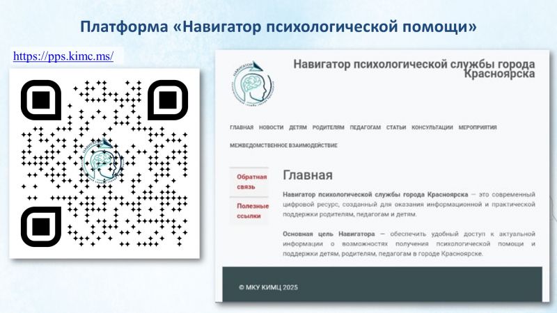Навигатор психологической службы города Красноярска — это современный цифровой ресурс, созданный для оказания информационной и практической поддержки родителям, педагогам и детям.
